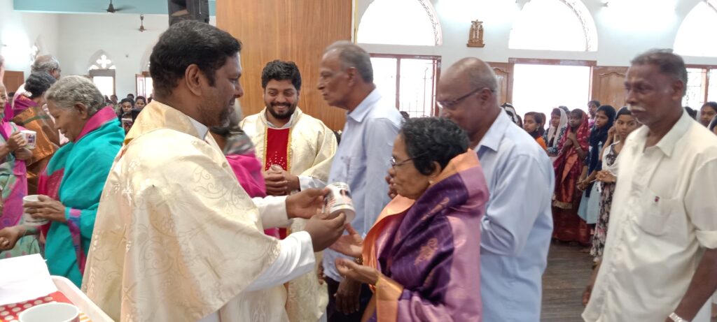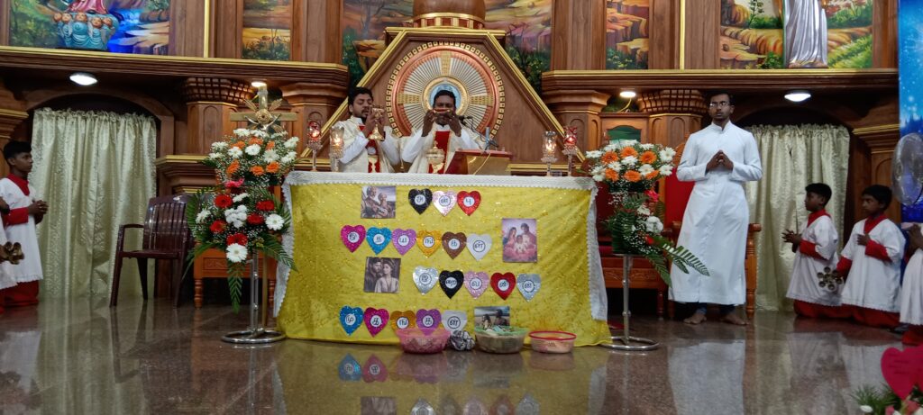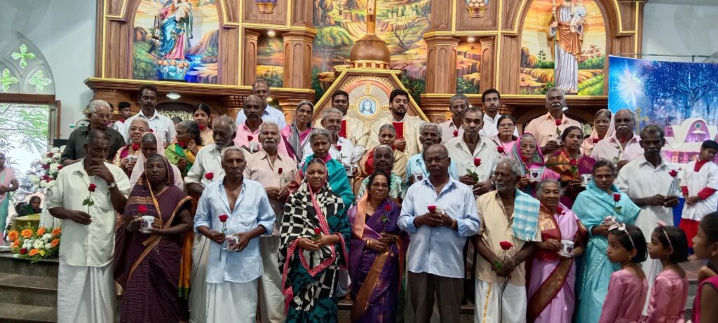 திருகுடும்ப திருவிழாவை முன்னிட்டு. நமது பங்கில் இல்லற வாழ்வில் 40 ஆண்டுகளுக்கு மேல் இணைபிரியாமல் வாழ்ந்து வரும் தம்பதியர்கள் திருப்பலி சிறப்பித்தார்கள்